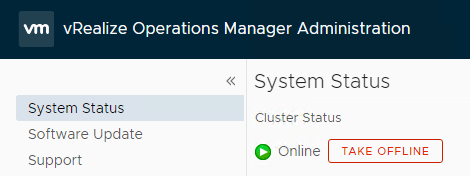 Log into vRealize Operations Manager admin UI and click on the Bring Online button.