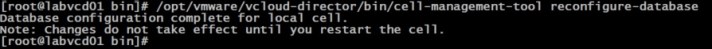 Next we need to run the reconfigure database command on each of the vCloud Director cells.