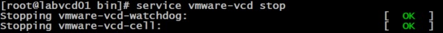 Before you start the migration its a good idea to snapshot the vCloud Director cells and manually backup the SQL database. Next you need to stop the vCloud Director services. You do this by connecting to each cell via SSH and running the following command.
