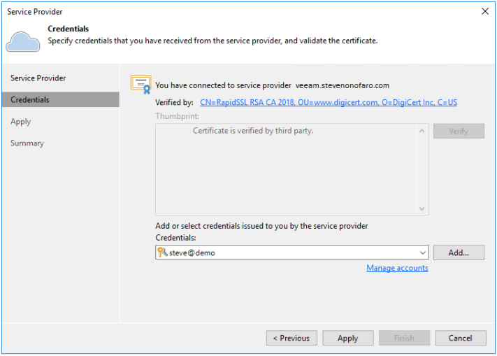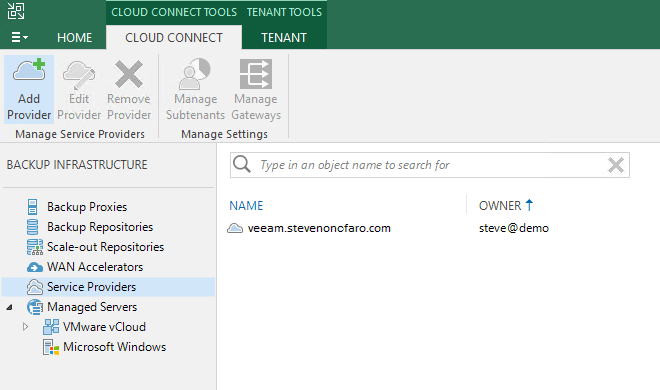 Now lets walk through how a tenant will connect to our Veeam instance from their on premise Veeam Server