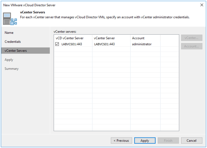 The account used will be the vCloud Director user credentials that are configured on the Org you will be connecting too. Make sure you enter the username in the following format username@Org-name