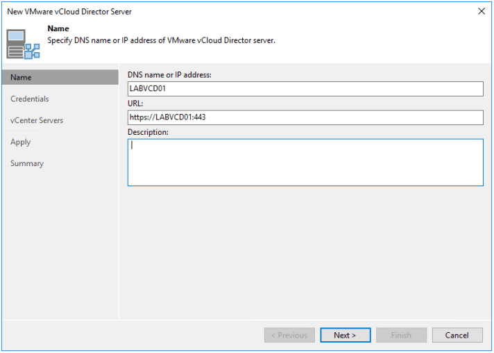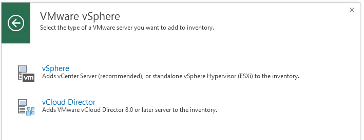 Next lets add in our vCloud Director Server. Under Backup Infrastructure click on Managed Servers, then Add Server. Then click on Vmware vSphere