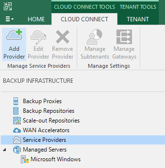 Click on Backup Infrastructure then select Service Providers, then click Add Provider