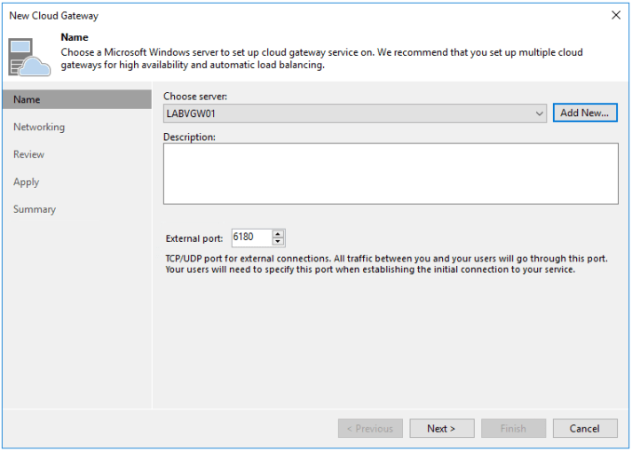 Now it’s time to setup the Gateway Server, this is the server that the clients will connect to from their on premise Veeam Instance. It’s a good idea to setup at least two gateways as a minimum. I am currently settings this up in my lab with limited resources but just repeat the process to install additional gateways.