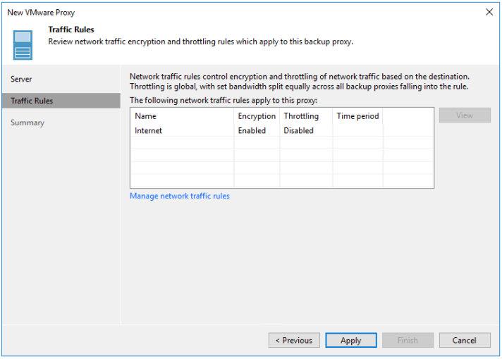 The next section allows you to configure traffic rules to control encryption and throttling. I will be using the default values again. Click Apply