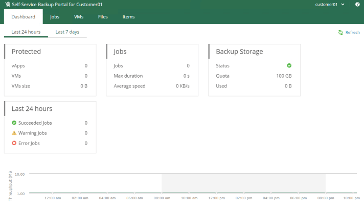 The tenant Customer01 has now been setup to access the backup portal for their VMs in vCloud Director