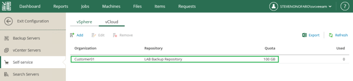 The customer can then go and create their own backup jobs for their VMs currently located in vCloud Director on the Service Provider side