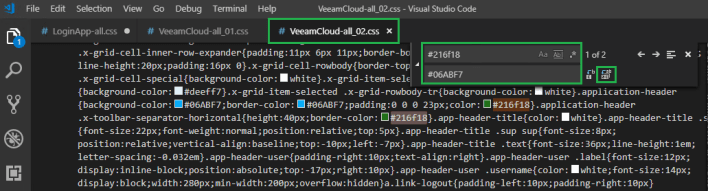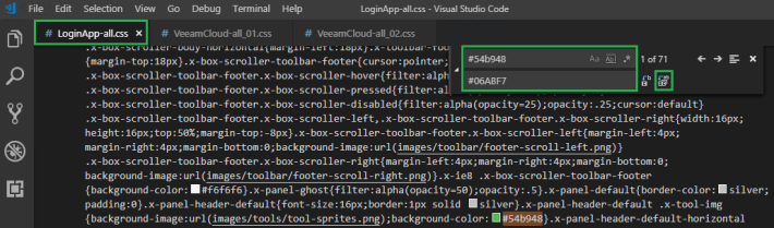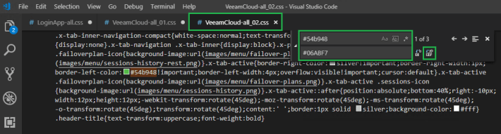 Then again for VeeamCloud-all_02.css, search for #54b948 and replace it with #06ABF7