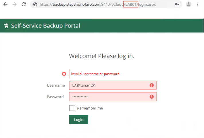 After upgrading to 9.5 Update 4a I ran into a strange issue with Enterprise Manager. When I would try and login to the Self Service Backup Portal as a vCloud tenant the login would fail. We know that the URL for the portal itself is case sensitive when it comes to the tenant org name but in this instance there was no problems there.