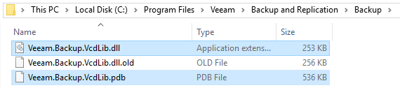 Copy Veeam.Backup.VcdLib.dll and Veeam.Backup.VcdLib.pdb from the link above into the folder.