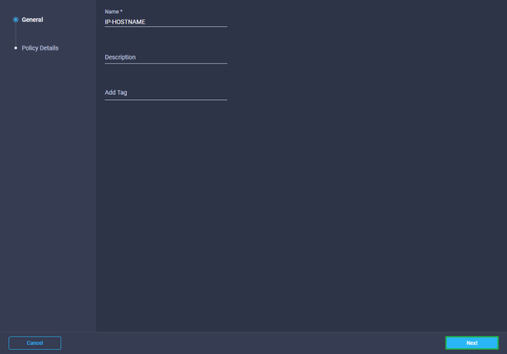 Then click on Create HyperFlex Policy and select IP & Hostname and click Next