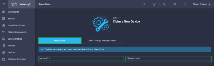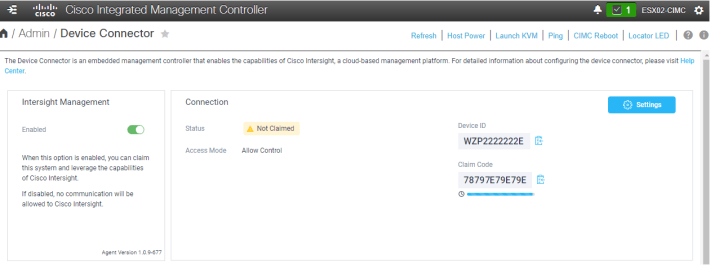 Next make sure Intersight Management is set to Enabled. Then copy the Device ID and the Claim Code into notepad ready for the following step.