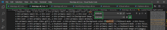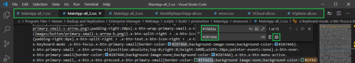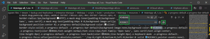 We are going to edit the following files to change the default Veeam green to blue for this example. Take a backup of each file before continuing,