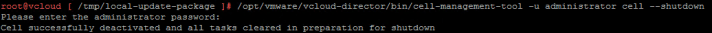 /opt/vmware/vcloud-director/bin/cell-management-tool -u administrator cell –shutdown