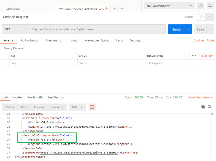 Example – https://vcloud.stevenonofaro.net/api/versions