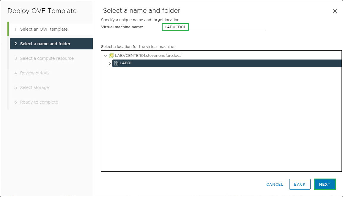 Switch over to vCenter and select Deploy OVF Template and then click on Upload Files and locate your Cloud Director 10.3.1 ova file. Once complete click NEXT