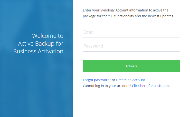You will be prompted to login with your Synology Account. You will also be given the option to create one if you dont have one setup already.