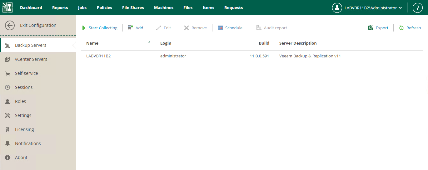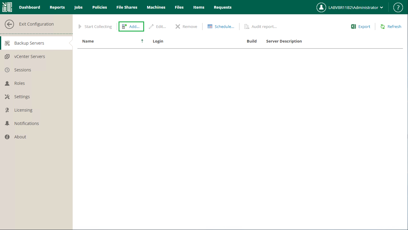 From the Backup Server menu select Add to add in your Veeam Backup & Replication Server.