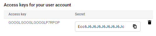 Take a copy of your Access key and Secret as we will need this when creating the connection from the VBR console. The access key and secret you see below have been modified.