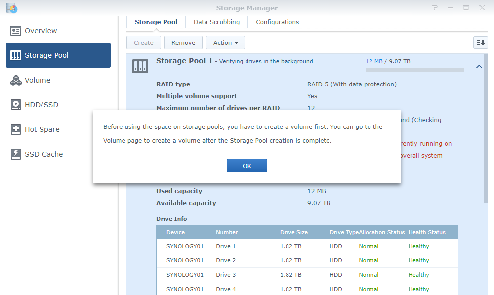 That’s it your Synology is now configured and ready to use. Close the Storage Manager window.