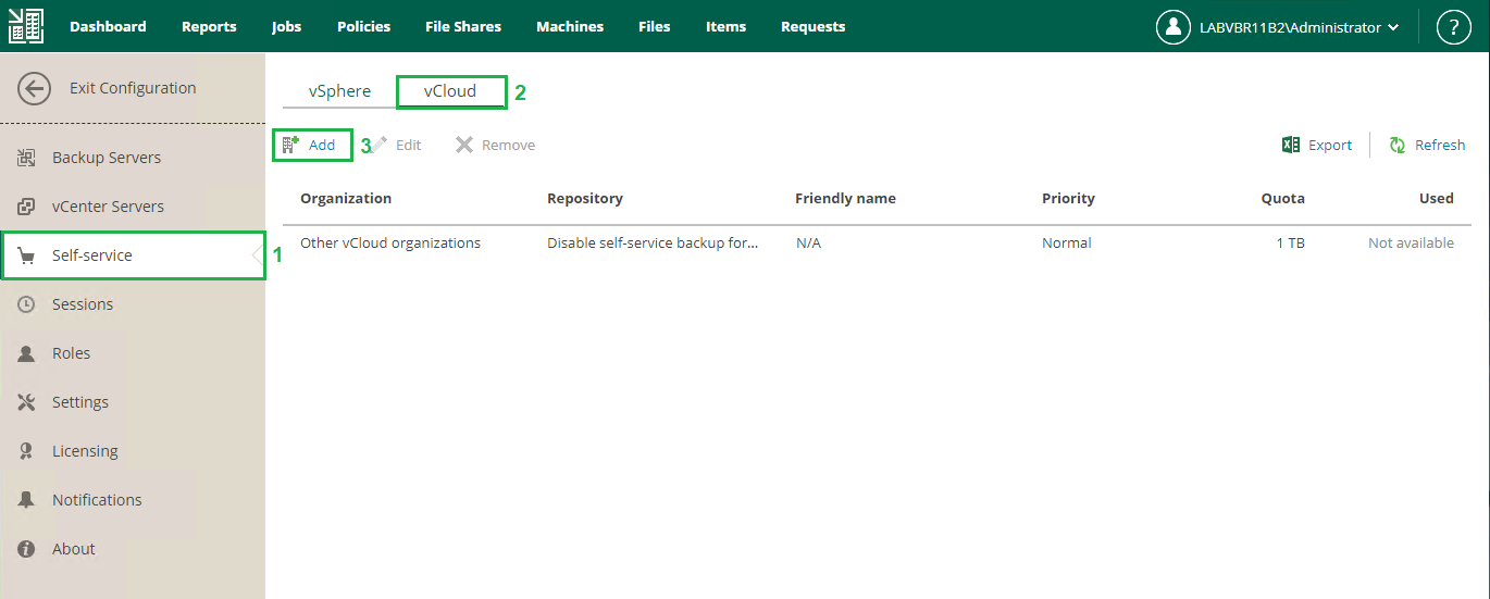 Now let’s go through to the process to configure the Enterprise Manager Self-Service portal for use with vCloud Director and then we will setup the new Veeam v11 Plugin.