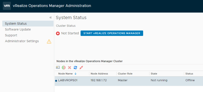 You will then be redirected to the vRealize Operations Manager screen. If at this point it logs out just log back in with admin and credentials you entered during the install and click Start vRealize Operations Manager.